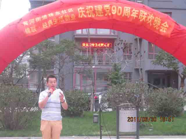2011年6月30日晚,沈阳锦联经典生活物业携手珠东社区庆祝建党90周年大型文艺晚会在沈阳经典生活南门广场隆重举行。黄河街道党工委副书记赵先原、民政科科长徐陇荣、社会事业科科长闻中谦;珠东社区党委书记郑晓翠、党委副书记刁璇;沈阳锦联经典生活物业总经理施福谊、总经理助理魏东民等出席并观看晚会,与沈阳锦联经典生活园区业主共同庆贺中国共产党九十华诞。 在气势恢弘、振奋人心的诗歌朗诵《党啊,我亲爱的母亲》中拉开了当晚联欢会的帷幕。红色情景组歌、经典时装走秀、弘扬诗歌朗诵……一首首悦耳动听的歌曲、一段段欢腾奔放的舞蹈、抒发了华夏儿女热爱党、歌颂党、祝福党的真挚情感! 本次联欢晚会精心撷取了《我爱你中国》、《明天会更好》,情真意切的《我爱你塞北的雪》、《过雪山草地》等耳熟能详的歌曲,生动展现了社区和物业公司及广大业主在党的领导下,积极融入改革开放大潮中的时代风貌。晚会的节目催人奋进,谱写了壮志豪情的崭新篇章。 最终晚会在全场合唱《没有共产党就没有新中国》中圆满谢幕,深深祝福祖国、祝福伟大的党。本次晚会的成功举办,获得了园区业主的一致好评,业主纷纷表示:通过此类活动的开展,不仅给纳凉的居民提供了陶冶情操的精神享受,还能增进物业与业主之间的感情,使业主再次感受到经典生活物业贴心的服务。