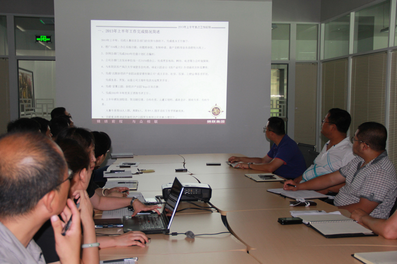 2013年7月13日,锦联新经济产业园召开主题为“总结、调整、改进、提高”的2013年上半年工作总结大会,公司高管、各部门负责人及部分员工参加了大会。 会议目的在于通过对上半年的工作的总结和复盘,调整工作状态、改进工作方法、提高工作效率,从而推进下半年工作顺利高效地展开。会上,各部门负责人对2013年上半年的工作整体情况及下半年工作目标进行了汇报,与会高管在与参会人员进行充分沟通后,在指出各部门工作中存在不足的同时,明确了下半年工作重心。此外,与会高管也对各部门所面临的一些问题当场给予协调解决。 工作总结会后,在园区内举办了全体员工大会及联谊活动,发出了“迎全运,决战50天”的总动员令!全体同志斗志昂扬,士气高涨,纷纷表示坚决完成任务。在丰富多彩的联谊活动中同志们都积极踊跃地参与其中,并乐在其中,大家充分地交流了思想,增进了情谊。 本次大会增强了企业的凝聚力和员工的团队精神,各级员工进一步明确工作方向和步调,为按计划完成全年经营任务打下坚实基础。