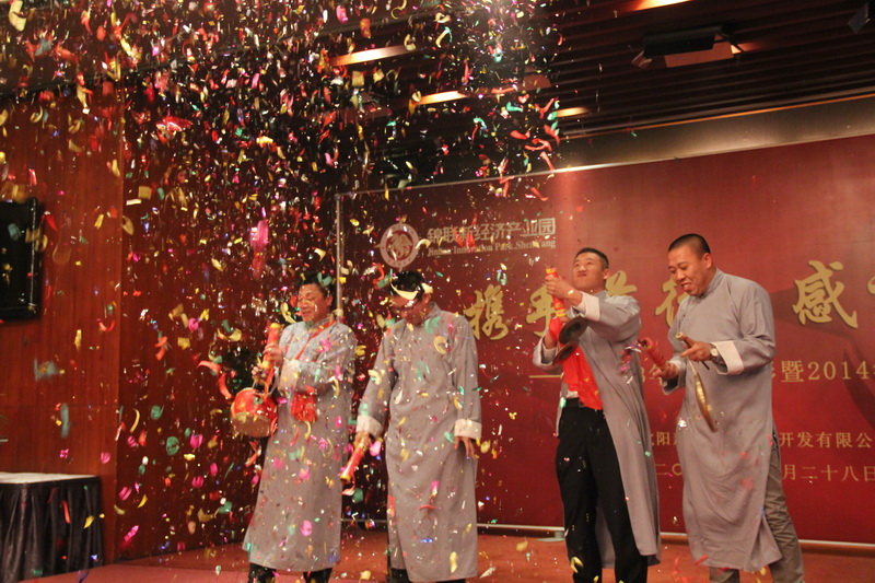 小龙辞岁,骏马迎春,马年的钟声即将响起,为了庆祝传统佳节,营造和谐祥和的节日气氛以及团结进取的工作氛围,沈阳新经济产业园公司于2013年12月28日隆重召开“携手前行,感谢有你”——沈阳新经济产业园开发有限公司2013年度总结表彰暨2014年新春晚会,公司领导及全体员工,共计104人,齐聚一堂,共庆蛇年辉煌,齐拓马年大业! 公司年会的基调平实检朴,但又欢快热烈,2013年工作总结大会在一段项目视频回顾中拉开序幕,全体同仁共同回顾了沈阳新经济产业园的发展历程。随后的表彰环节,通过颁发“敬业员工”、“优秀员工”和“先进部门”等奖项,让在工作中默默付出的员工,为公司发展做出贡献的部门,深深的感受到公司浓厚的企业文化以及良好的发展平台。大会的最后,由公司总经理刘海涛先生总结致辞,刘总对各部门在2013年的工作情况作了重点总结,肯定业绩,找出差距,并对2014年的工作提出新的要求及期望,鼓励大家2014年再创佳绩! 随着表彰大会的结束,一曲欢快的《恭喜恭喜》舞蹈表演引领大家进入迎新晚会。各部门员工纷纷登台献艺,节目精彩纷呈,不仅有经典的歌曲、吉他弹唱、时尚热舞,更有新颖的手影舞、三句半,营销部员工自编自导的小品《生日舞会》给大家带来了阵阵笑声,而由公司高管领唱,全体员工合唱的《团结就是力量》将整场晚会推向高潮。晚宴环节,游戏与幸运抽奖并行,精彩连连,欢呼不断,员工们充分释放了工作压力,互通感情,整个会场融汇为一片喜庆、热闹的海洋。 我们用真心铸就品质,在智慧的土地上播种希望;我们用坚韧开拓事业,在辛勤的汗水里收获喜悦。2014年我们注定任重道远,在项目规划发展的攻坚之年,沈阳锦联新经济产业园的全体员工将继续在集团方针的指引与公司领导的带领下,携手前行,再创锦联辉煌!
