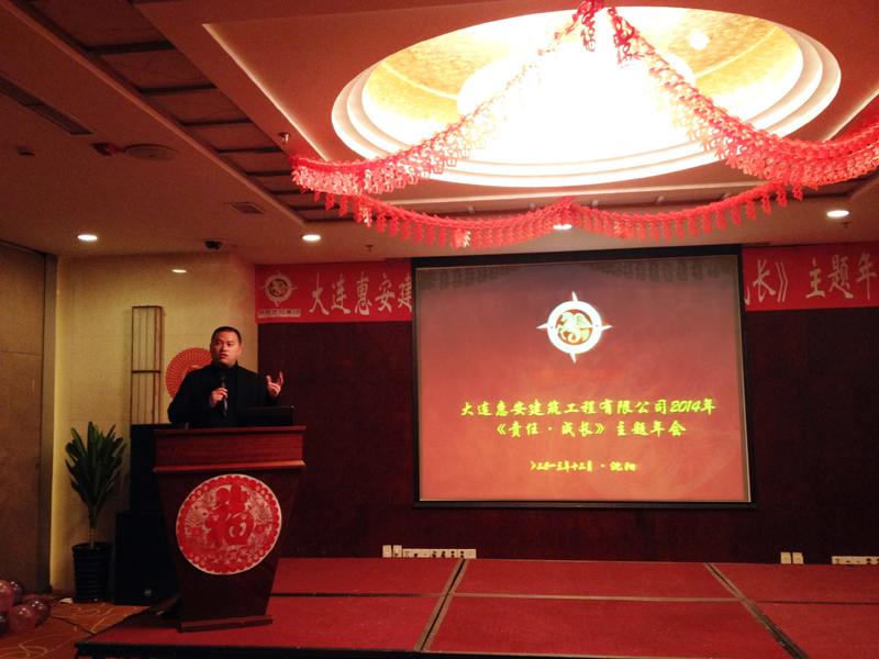 2013年12月28日,以“责任·成长”为主题的2014年大连惠安建筑工程有限公司年会在沈阳天伦瑞格酒店举行,本次年会由项目游览及“责任·成长”主题年会两部分组成。 28日上午六点,全体员工从营口项目开始相继游览了盘锦、沈阳三地装饰工程项目,这个严寒的冬日,它抵挡不住全体员工在项目游览过程中的热情,大家在各项目经理的介绍中增进装饰工程知识,在实地游览过程中感受装饰魅力所在,各项目人员彼此交流工程心得,游览过程充实而有意义。 下午六点,惠安公司2014年“责任·成长”主题年会的大幕缓缓拉开,会议中通过展示全体员工电子档案手册,进一步加深了全体员工对彼此的了解,营造出惠安公司良好的企业文化氛围,接下来的颁奖典礼中,总经理及部门经理为获奖部门及个人颁发了奖杯和证书,各位获奖者纷纷表达了在2013年中的感受,会议最后由惠安公司总经理马振利先生发表了新年致辞及对2014年工作的展望,他表示,2013年是惠安公司稳步提升的一年,在地产集团的带领下,惠安公司圆满完成各项经营指标,马总强调2014年我们将面对诸多挑战,同时也要求全体惠安员工树立高度责任心,把目标踩在脚下,向着更加美好的未来奋勇前行! 颁奖典礼结束,年会的文艺晚会部分精彩上演,在公司各部门的精心准备下,晚会节目样式丰富多彩,包括歌舞、小品、三句半、双簧等,配合绚丽多彩的舞台和灯光,将全场气氛一次次推向高潮,晚会最后由工程部全体合唱的《朋友》更是赢得了场下的阵阵掌声和欢呼。 雄关漫道真如铁,而今迈步从头越,2014年惠安公司必将在地产集团的带领下,不断向业界的标杆装饰企业学习,不断总结经验、优化工作流程,更好的为锦联地产集团创造价值!
