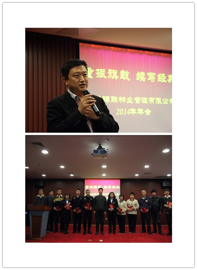 1月3日大连锦联物业管理公司携手四家物业服务中心齐聚一堂,召开“重振旗鼓•续写经典”主题年会。年会在“回顾大连锦联物业管理有限公司及下属物业服务中心2013年度工作成果展示及全年工作汇报”中拉开帷幕。随后,对全年工作表现优异的团队及员工进行表彰。最后,大连物业管理公司总经理李建平发表讲话,对各物业服务中心2013年工作进行全面细致的总结并对2014年工作进行部署和展望。李建平总经理明确表示:2014年,大连物业各中心应发扬优点,正视并改进不足,向着2014年的目标全力奋进! 年会结束后,迎新晚宴及文艺演出将新年气氛推向高潮。恭贺新春动画视频新颖搞笑、寓意吉祥;文艺演出为辛苦了一年的员工搭建了释放欢乐、展示自我的舞台;抽奖环节更是让大家心潮澎湃、满载而归。晚会现场,是笑声的世界,是歌声的海洋,是大连物业最热烈、最激情的欢乐唱响! 2014,大连锦联物业将继续扬帆起航,积蓄所有的力量,重振旗鼓,续写经典!