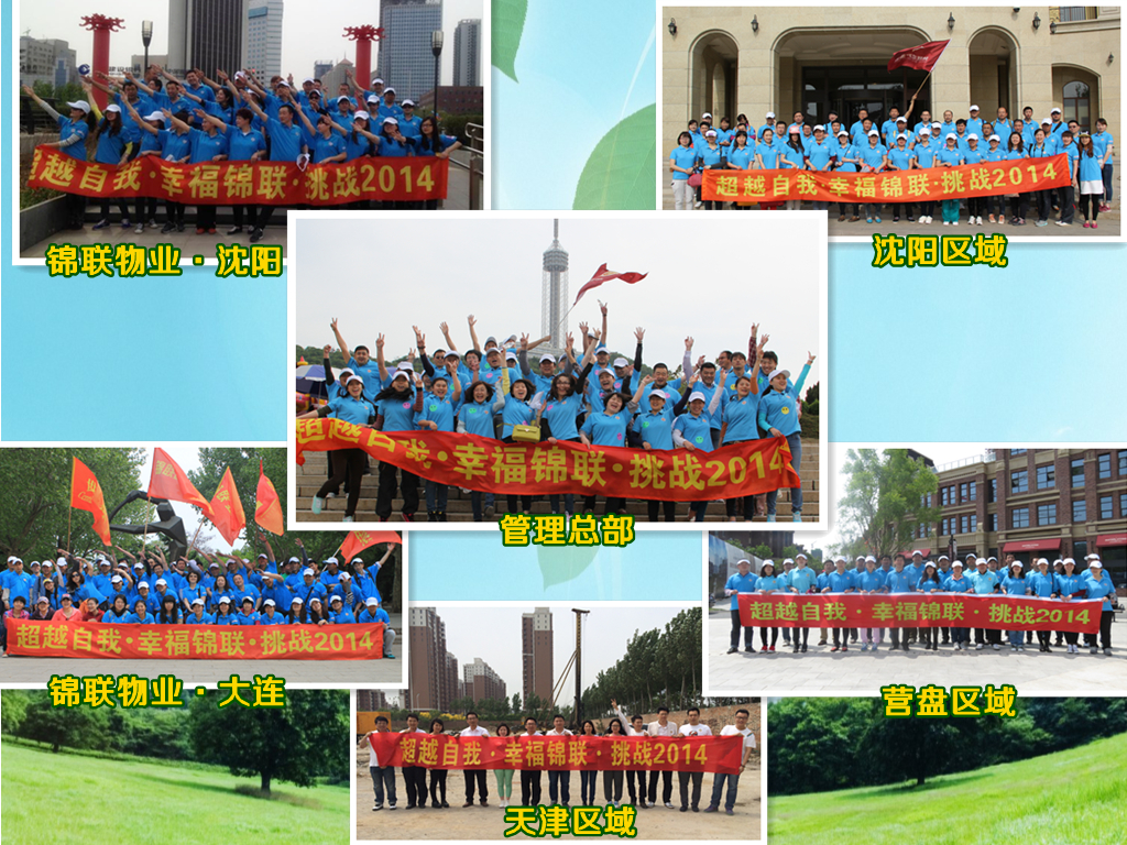5月,鲜花簇拥的季节——2014年5月10日,锦联地产集团五城联动,共同启动“超越自我•幸福锦联•挑战2014”团队建设首次活动。 锦联地产集团管理总部携手大连惠安建筑工程有限公司及大连从泰园林绿化工程有限公司共同开展徒步游园活动。本次活动起于百花竞相绽放的劳动公园,徒步途中穿插“趣味接力”、“海盗船长粉红娘娘”互动游戏,期间欢声笑语此起彼伏,并奖励获胜团队游乐园海盗船、碰碰车项目以此找寻童年的快乐记忆。徒步穿越绿荫环抱的木栅道至绿山之巅——大连广播电视塔,在电视塔观景台俯瞰大连全景,美不胜收。回程途中大家开怀如花,融入花海中,镜头定格住每一张绽放的笑脸,此情此景颇显生机、其乐融融,多姿美态的照片将通过邮件系统发起的“集体最具搞笑、最具创新、最美景色”评选活动一一呈现。 此次徒步活动的完美启幕,不仅使员工充分释放工作压力,感受健康的生活方式,更加增强了团队凝聚力,传递彼此快乐的正能量,为本年度地产集团团队建设系列活动谱写了精彩的开局。