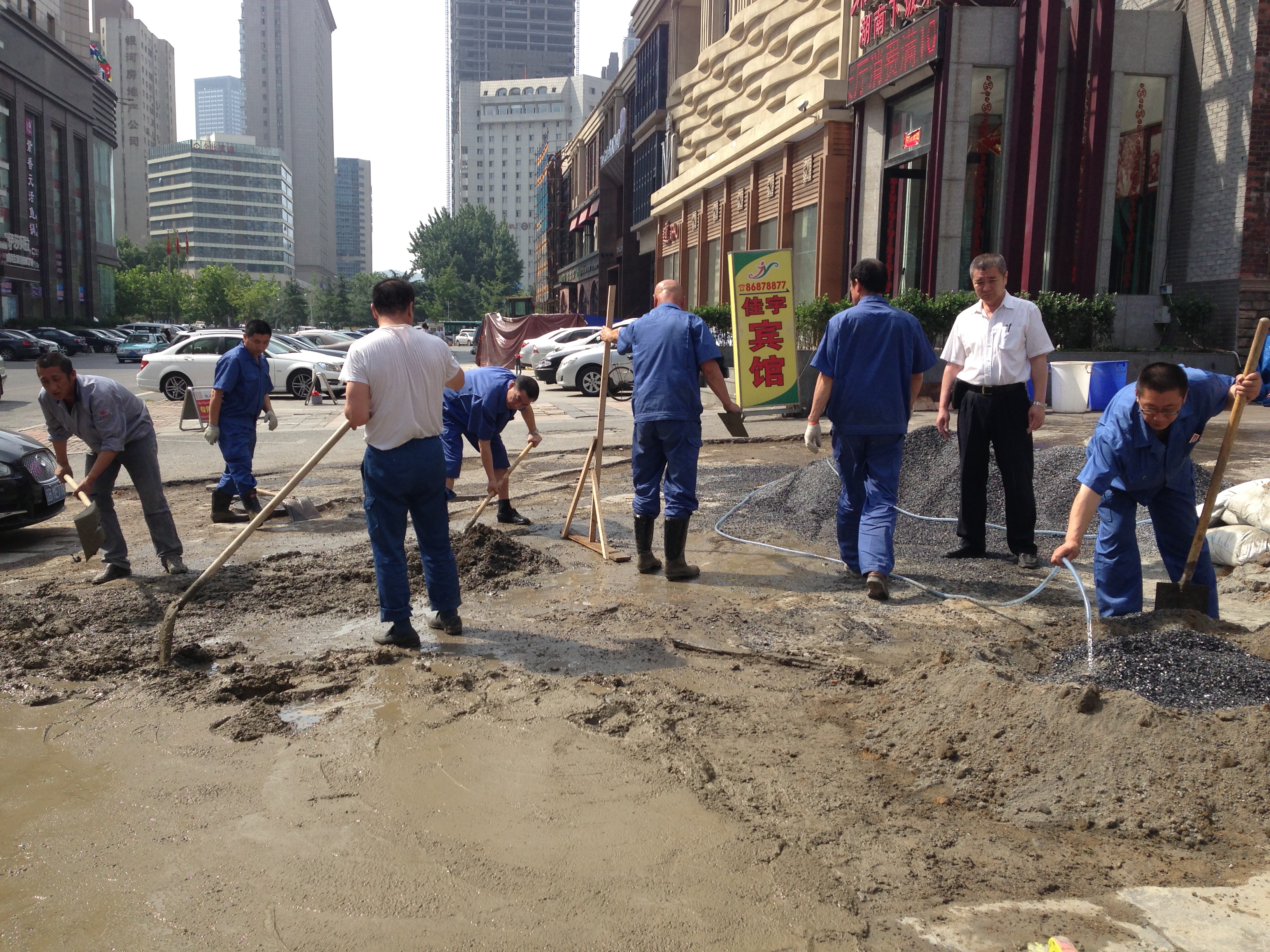 2014年6月25日,大连经典生活物业服务中心外街铺设工程全面启动,工程部全体员工顶着炎炎烈日,完成了该项大修工程。