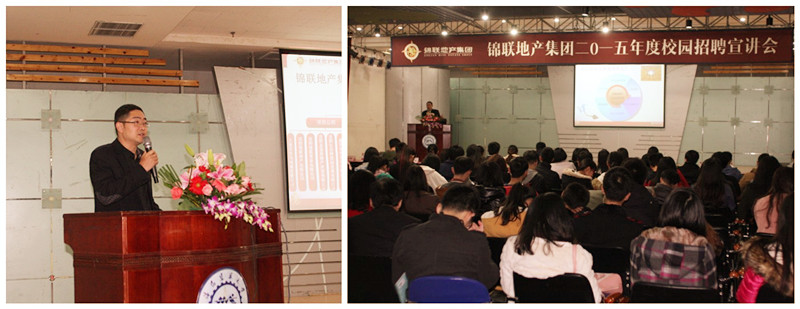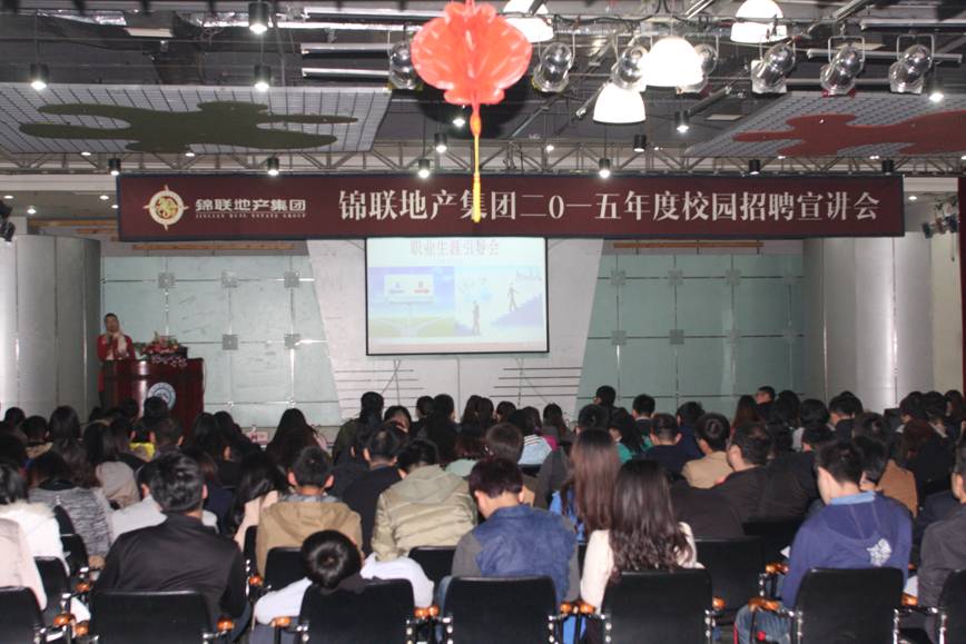2014年10月29日,锦联地产集团走进沈阳建筑大学举行大型专场招聘宣讲会,集团营销副总裁兼沈阳区域总经理孙志勇、行政人力副总裁王润红、规划设计助理总监张勇、营销助理总监张嘉伟出席此次宣讲会,行政人力总监高原主持本次宣讲会。下午五时许,现场来自沈阳建筑大学以及辐射周边知名学府的上百多名应届生人才提前到场,全场座无虚席。 企业介绍及履历分享 带学生走进锦联 宣讲会由孙总担任分享嘉宾,以三产业联动的视角带学生走进锦联集团,在地产行业背景优劣势分析的基础上,解读锦联地产的品牌力量,生动形象地为学生还原“锦联是一个什么样的企业?”。孙总基于企业未来发展战略及为应届生人才提供的机遇与挑战,提出“你在锦联能够获得什么”及“锦联在找什么样是人才?”,以此三条主线有力地将应届生人才的自身定位与企业的发展紧密联结。 职业生涯引导会 明确自我发展方向 职业生涯引导会环节是学生特别关注与参与度很高的环节,王总风趣诙谐的讲说风格拉近与应届生人才的距离,与他们敞开心扉分享在锦联的职业成长历程,给正在职业生涯起点的同学们提出四点中肯的建议,在学习中锻炼,在锻炼中提升,既要脚踏实地,又要明确方向,让自己真正成为一个对企业、对社会有责任心的人,实现自我价值。这场别开生面的职业生涯引导会,让到场的每一位同学不虚此行。 “锦联之星”招聘计划 敞开人才培养大门 行政人力总监高原就此次“锦联之星”2015年校招计划与学生们进行了交流,针对企业为学生搭建的培训体系、招聘岗位以及要求、面试流程安排等细节做了全面阐述,鼓励学生积极发挥自身特长,投身自己喜爱并擅长的岗位,锦联地产集团欢迎每一位才学优秀的人才加入企业并肩发展。 互动环节场面非凡 现场面试人才济济 在热烈的互动问答环节之后,到了同学们期盼已久的现场简历投递及印象面试环节,当天共收到800余份简历,网络电子简历200余份,学生在现场与高管团队与HR进行面对面的沟通与交流,现场确定进入接下来笔试及无领导小组讨论的名单,同时扩充锦联地产集团应届生人才储备库。 锦联地产集团正值发展的关键时期,需求大量的人才支撑企业的未来战略部署。此次“锦联之星”校招计划是为企业培养具备未来发展中坚力量的锦联未来之星,也是为应届生人才提供成长与职业化的发展平台。此次沈阳建筑大学站招聘宣讲会完美绽放,为接下来的校招计划有序开展奠定良好基础。