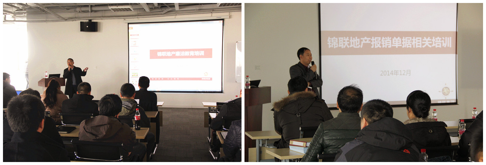 2014年12月4-5日,锦联地产集团组织全体员工年度集中培训,各项目公司、配套公司全员及物业公司管理人员共赴沈阳总部参加此次集中培训学习。 新架构管控思路宣讲 核心管理模式解析 培训伊始,首先由锦联地产集团执行总裁刘克平为全员讲解2015年度地产新架构模式,并明析此模式下的管控思路。新架构模式形成开发建设、管理、运营三大中心,形成总部至项目公司在各系统对位管控的强矩阵管理模式。基于此种管理模式将各系统与项目有机结合,实现纵向职能与横向多组织的高效管理,有助于整体管理水平的提升。刘总最后指出,希望通过进一步深化工作,将锦联地产团队打造成为一支崇尚公开透明、阳光沟通、团结协助,工作拼劲十足并具有战斗力的团队,以业绩优势论发展,促进锦联地产总体目标的实现达成。 阳光廉正从业 进一步完善财务管理 廉洁从业不仅是财务系统人员恪守的工作准则,更是地产全员应秉持的职业精神,这是财务副总裁王云向地产集团全体成员发出的职业倡导。王云总通过对真实案例的分享,警示全员廉洁自律、严格要求自己,拒绝违规行为,共筑企业长期健康发展的“防火墙”。随后,财务管理总监孙华江针对财务报销流程等做详尽讲解,进一步提升财务管理的规范性。 重视新入职员工培训 强化锦联企业文化 下午,首先由行政人力副总裁王润红对行政人事系统全员、各系统及项目负责人进行专项培训。王总在培训中指出,随着企业的不断发展,新入职员工比例增大,王总从招聘、录用、磨合、落地等方面全面展开,分析了通过新员工培训宣贯企业文化,实现个人发展与企业追求同步的重要意义。王总还带领参训全员重温锦联核心文化,深刻锦联经理人、锦联企业领导人的基本要求与标准,并在此基础上强调了锦联地产人的行为标准,即以“四面八方”精神为核心的工作行为准则。 充分利用信息化工具实现高效沟通 在地产集团内部,邮件等信息化工具是一种重要的职场沟通方式,更是一种推动工作的手段。由规划部景观设计经理赵婷婷对邮件的格式、发送对象、使用原则等方面分享如何通过邮件促进工作高效开展,并通过案例分享邮件在工作横向交圈及纵向信息释放中的重要作用。 深耕产业地产盈利模式 挖掘全员营销秘笈 本次全员培训最后一场由营销副总裁兼沈阳区域总经理孙志勇主讲。孙总诙谐分析“众筹、马云、特斯拉、诺基亚”四个案例中创新之于发展的重要性,并由案例引申至产业地产差异化营销战略的竞争优势,进一步坚定对集团产业地产发展战略的信心。孙总对产业地产盈利模式深入解析,使非营销系统人员得到了一次全员营销理念和思维的洗礼。