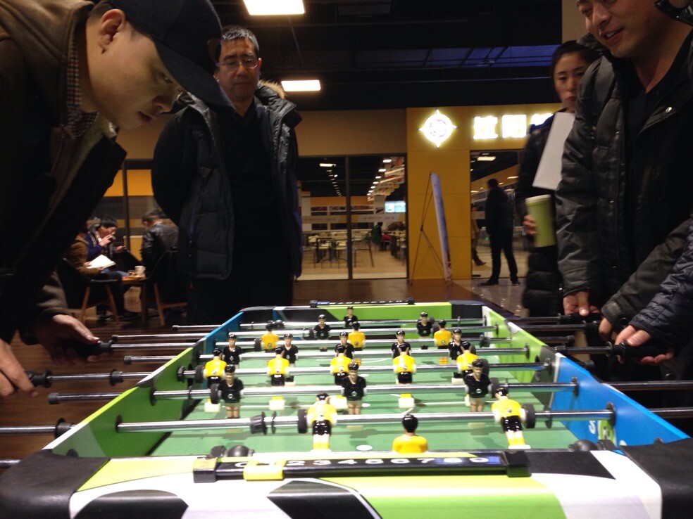 点一杯蓝山静坐下来,抬头环顾四周,发现第一天开业的咖啡吧满是人气。有人独自静坐一隅,边品啜咖啡,边翻看时尚杂志;有人三五成群交谈甚欢;还有参与到桌上足球的游戏中,不时发出一声声欢笑。