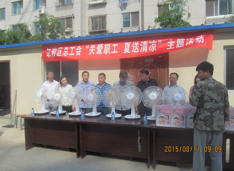 2015年8月11日上午9时许,营口市站前区总工会携手锦联地产集团营口加伦置业有限公司举办“关爱职工 夏送清凉”慰问活动,为工地现场的工友们送去防暑降温用品和健康宣传资料,督导和落实企业的高温防护工作,提高高温作业的防范意识。营口市站前区总工会副主席王远协保障部部长韩江红及站前区计生局、东风街道党工委、东风街道总工会等出席了此次活动。 活动伊始,总工会副主席王远一行听取了营口项目助理总经理石砜对项目的建设情况及施工现场的工作人员分布、施工安全等的详细讲解,随后为工友派发风扇和健康宣传材料。在炎炎夏日,为工友们送清凉的同时,送去真诚的慰问。 本次活动进一步激发了广大工友们的投身建设工作热情,鼓励广大民工为项目建设及城市发展做出更大的贡献,同时对建设工会及企业形象、促进经济社会和谐稳定发展具有重要的实际意义。