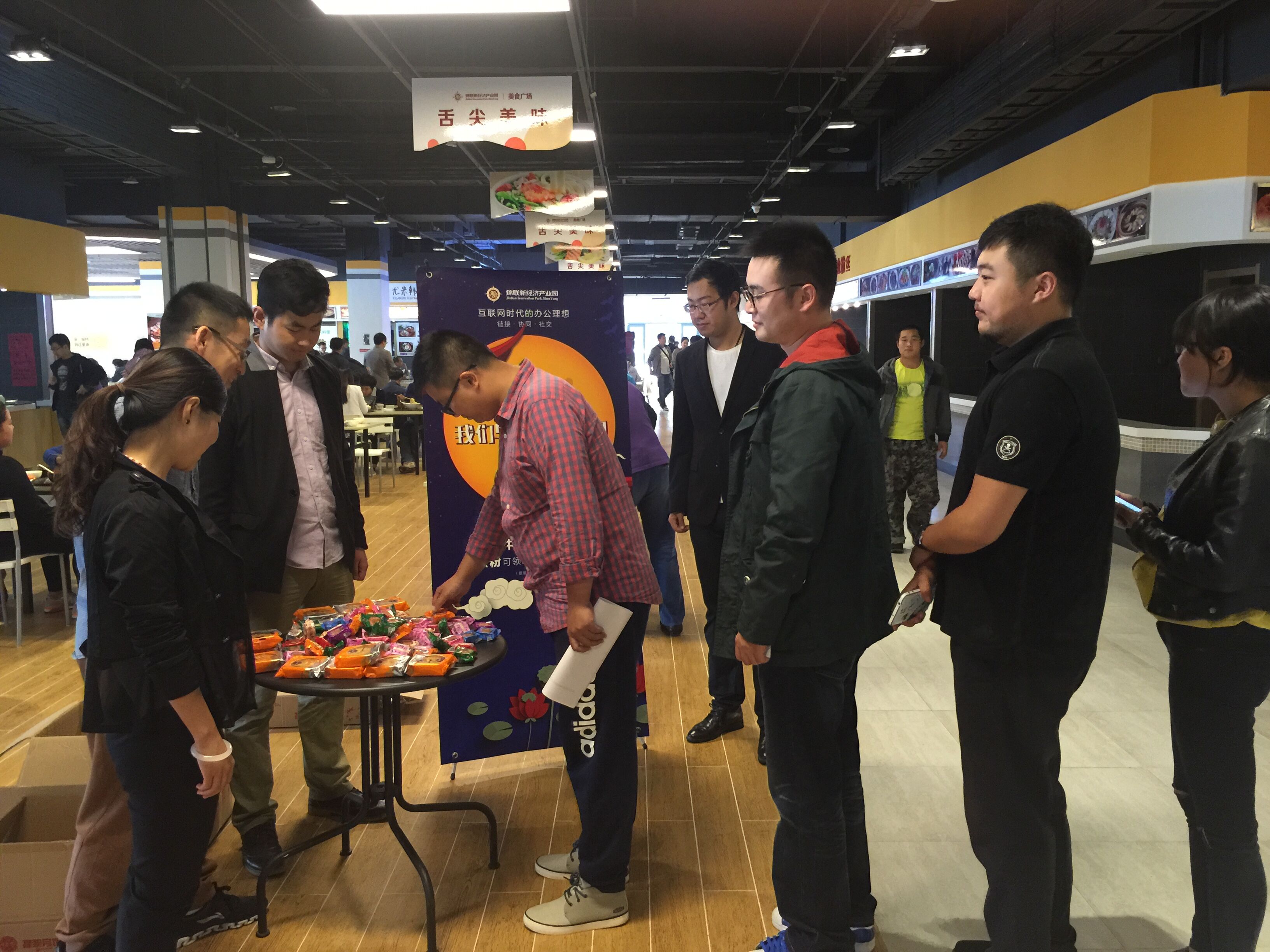 2015年9月25日,将至一年中秋日。锦联新经济产业园联合美食广场举办赠月饼送祝福活动。中午时分,大家兴致盎然持“中秋情”月饼 礼券,齐聚美食广场,一起欢度中秋佳节。