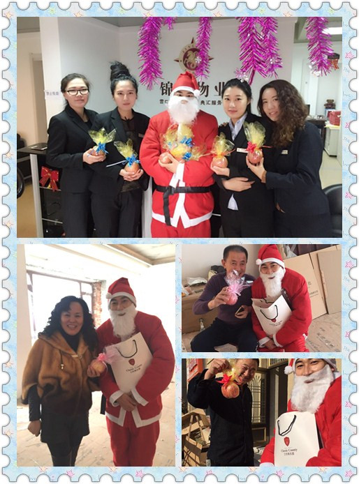 为了向各位业主奉上诚挚的节日问候及热情周到的服务,锦联·经典名郡物业服务中心员工们匠心独运,扮成圣诞老人,背着沉甸甸的圣诞苹果,伴随着经典欢快的圣诞音乐,满载着锦联物业对业主们的深深祝福,携带着无限的欢乐来到了业主及小朋友的身边,说一声“Merry Christmas”,为小区业主与小朋友送上精心准备的小礼物和节日问候与祝福,让业主们再次感受到了锦联物业服务的真诚,点燃了业主们心中的童趣,感受到了相亲相爱一家人的和谐欢乐氛围,受到广大业主们的一致好评。 通过此次活动,让广大业主感受到锦联物业服务的周到和热情,业主渡过一个快乐的圣诞节的同时,增进了物业与业主之间的情感,使业主时时刻刻感受到物业的贴心服务。