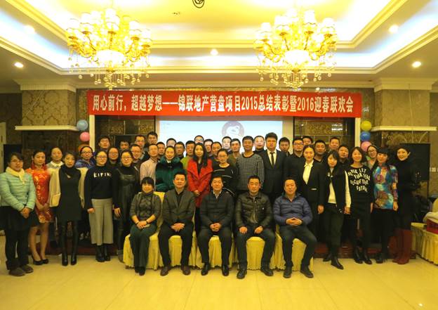 春寒料峭,春意正浓。2016年2月4日,锦联地产营盘项目 “用心前行,超越梦想” 主题年会在营口隆重召开。锦联地产集团副总裁、营盘项目总经理吕冰携营盘全体员工齐聚一堂,共庆美好新年的到来。