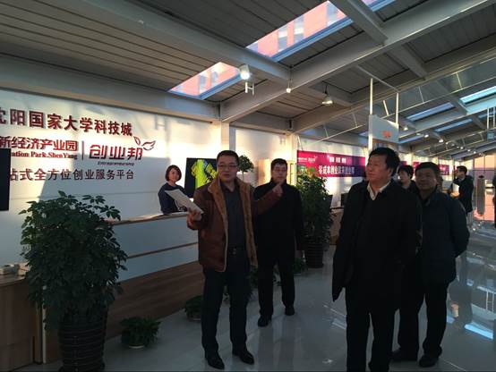 2月17日下午,沈阳市科技局副局长吴希平、高新处处长姜明;浑南区科技局局长沈小舒、副局长陆春等一行7人莅临锦联“创业邦”参观指导,锦联地产集团产业发展中心总经理赵明对来访领导进行热情接待。