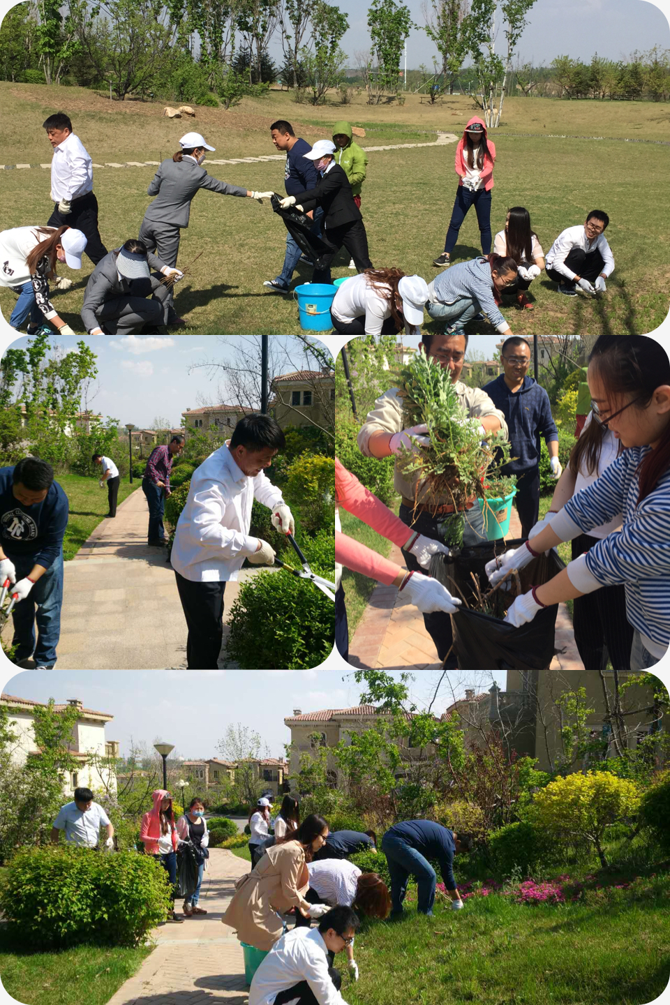 万物复苏的五月,又到了沈阳市棋盘山地区一年一度最美丽的季节,天空蓝的仿佛无边的锦缎,喜鹊又聚集在示范区的草坪上争鸣,去年春天我们种下的小树,如今已枝繁叶茂,迎风招展。 5月10日下午,锦联(沈阳)文创产业园在项目景观示范区举办了园林景观清理及养护活动。项目全员集合在示范区内,在碧草蓝天的环绕中,一边欣赏着春日的美景,一边动手清理和维护示范区内的园林景观。在景观工程师的指导下,拾起枯枝,拔除野草,修剪灌木,通过两个多小时辛勤的劳动,对示范区景观道路两侧所有的园林景观的进行了彻底的清理和维护。 此次活动,大家尽情挥洒汗水,维护园区美景,使得我们更加珍惜文创园优美的景观。同时,也让园区业主深深感受到锦联文创园带来的愉悦与快乐!