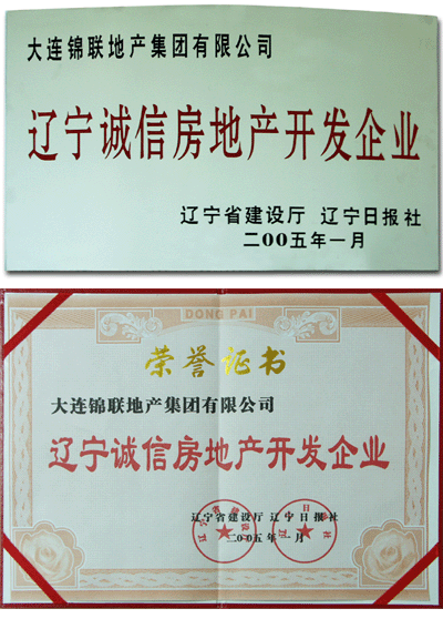 省建设厅授予“辽宁省诚信房地产开发企业”称号,锦联地产再添光环! 随着锦联地产集团有限公司发展的不断壮大,企业已步入到更为成熟的发展阶段,锦联的品牌与实力也得到社会的广泛认可。 暨荣获建设部授予的“中国知名地产”后,再传喜讯——锦联地产集团有限公司被辽宁省建设厅评为“辽宁诚信房地产开发企业”,并颁发证书。 国家建设部、辽宁省建设厅,一个个权威荣誉的获得,为锦联地产集团的发展做出了历史性的见证。锦联地产集团将继续秉承“锦联地产,制造经典”企业精神,不断完善企业管理,精心打造经典产品,回报社会与广大消费者。