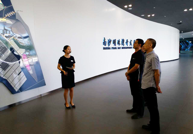 在广州市委常委王成,南沙区委常委副书记徐永,区委常委李国、南沙新区片区管委会口岸工作办公室主任张本华、副主任吕良伟等领导的陪同下,李东军董事长一行先后对南沙新区、南沙明珠湾进行考察。在座谈会上,双方对相关项目合作进行研讨并交换意见。