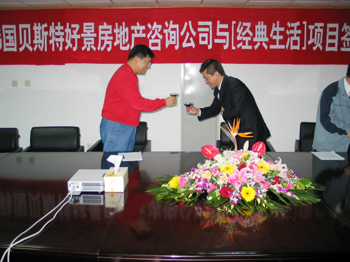 随着[经典生活]商街工程竣工、工地围档拆除、内部景观的日渐完善,不仅使看到它的人叹为观止,同时也赢得了境外买家和招商代理机构的青睐。 经过半个月的友好会晤和深入洽谈,10月20日下午14时,集团总裁于大海代表锦联地产集团[经典生活]项目,与来自韩国的境外招商代理机构——贝斯特好景房地产咨询公司的杨董事长,就[经典生活]商街招商、销售的相关事宜达成协议,成功签约。双方举杯同庆,并真诚预祝合作愉快,招商及销售工作取得良好业绩,实现双方共赢! 韩国贝斯特好景房地产咨询公司,曾代理并完成了国内多个商业项目在境外的招商、销售工作,有着丰富的行业经验和客户资源整合能力。他们对[经典生活]项目的市场前景非常看好,并有信心引进具有韩国文化特色的休闲娱乐品牌进驻[经典生活]商街,同现有中国传统休闲娱乐业和谐共生,互为荣宠,从而使未来的[经典生活]商街成为人们趋之若骛的国际化区域。 签约结束后,于总就对方搬至销售现场办公的相关事宜做了详细部署,并重点强调双方需秉承精诚合作的态度,使招商和销售工作形成良性互动,早日实现预期目标。