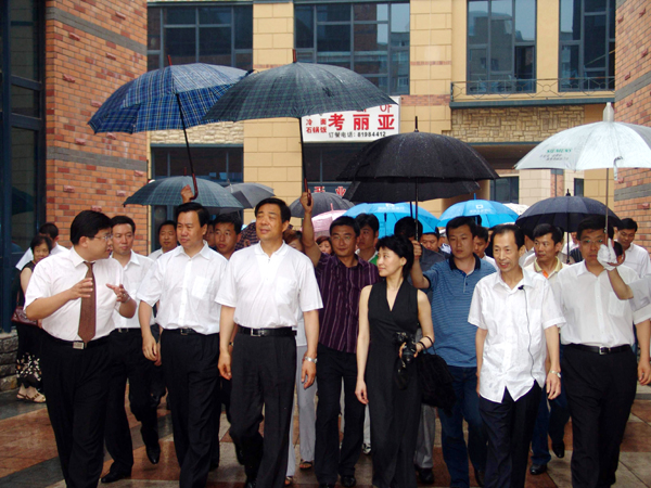 2006年7月30日上午,国家商务部部长薄熙来携夫人开来女士在大连市长夏德仁、副市长宋增彬等领导的陪同下,莅临 [经典生活]项目视察。 锦联投资集团总裁李东军、锦联地产集团总裁于大海率锦联地产员工热情接待了薄部长一行。在听取了项目汇报后,薄部长一行冒着绵绵细雨饶有兴致地步入项目地,薄部长对休闲文化夜生活区的市场定位、商街建筑风格、文化墙及小品的设置都给予了高度的评价,他说:“如果大连的重要路段和主要广场周边都建成[经典生活]这样的项目,大连就一定会成为一座经典的城市!” 随后,薄部长即兴步入 [经典生活]项目餐饮业态主力店“现代食尚”,翻阅了极具文化品味的[经典生活]项目特刊,与大家共同品尝了酒店的自酿鲜啤,并勉励在座的市领导及我集团领导,把项目经营好,把城市建设好。 在热烈的掌声中,薄部长挥手作别,锦联地产员工们的心情久久不能平静。[经典生活]项目作为大连市重点改造工程,承载着丰富城市功能、传承城市文化、提升夜经济的重大历史使命,薄部长的高度赞许和殷切嘱托,必将激励锦联地产将[经典生活]项目建设和运营成为大连城市的新名片!