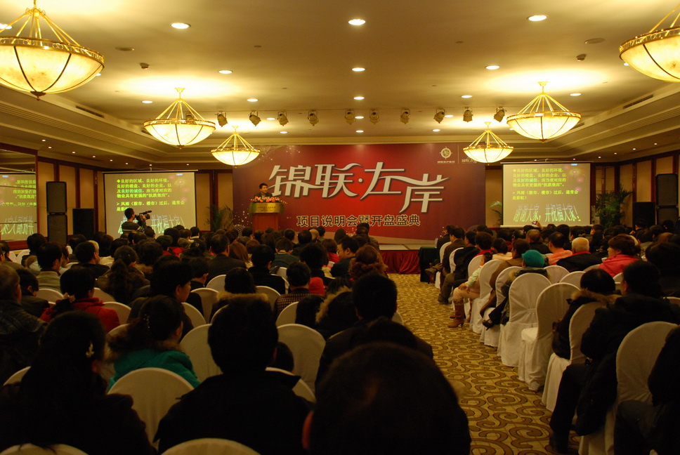 2008年12月14日,沈阳锦联置业公司在沈阳喜来登国际酒店隆重举行了锦联•左岸项目说明会暨开盘典礼, 900余位准业主齐聚一堂,合作单位、媒体记者共襄盛举。 沈阳锦联置业公司朱文刚总经理热情洋溢的致辞为本次活动拉开了序幕,沈阳房地产开发研究所齐锡晶教授就当前房地产市场形式及沈阳25条新政作出了精彩的讲解,新西林园林景观公司、锦联物业的负责人分别对左岸项目的景观设计、物业管理等方面进行了细致的阐述。沈阳锦联置业公司还邀请了十位准业主现场签订销售合同,900余人共同见证了这一激动人心的时刻,一次又一次的掌声将整个活动不断推向高潮。 此次典礼的成功举办,标志着左岸项目所有开发手续已经齐备,准业主们将陆续签订销售合同,时值08岁末,左岸项目提前掀开了09年的崭新篇章。