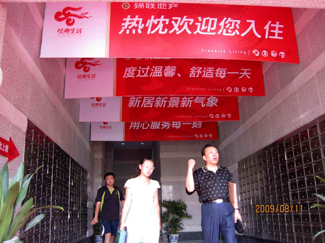 2009年8月10日,沈阳锦联•经典生活B座门前,拱门、鲜花、绿植、红毯映衬着客户的笑脸,到处洋溢着欢快、温馨的喜庆氛围。
